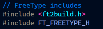 I started of by adding the FreeType library as a git submodule in the CMakeList. Then include it’s headers.