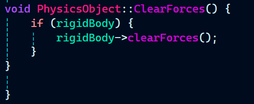 Last thing in PhysicsObject is a function to clear all the forces of a rigidbody.