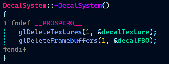 Since the decal texture and decal FBO were created in the constructor, it is equally important to remove them in the destructor.