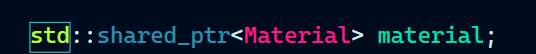 Let’s also have a look at the Material constructor. It takes in a pointer to the ResourceManager and a string for the material file name.